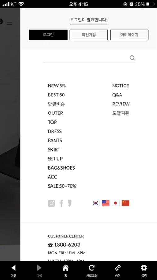 본 APP은 웹사이트 쇼핑몰과 100% 연동되어 있어