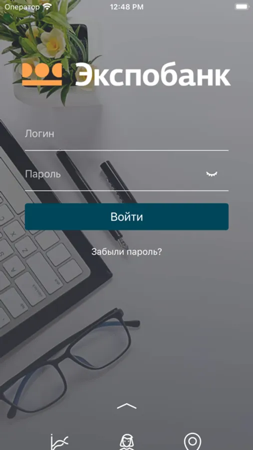 Для работы с приложением необходимо получить логин и пароль у сотрудника АО «Экспобанк»