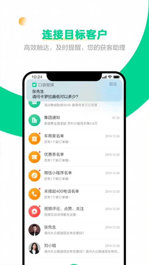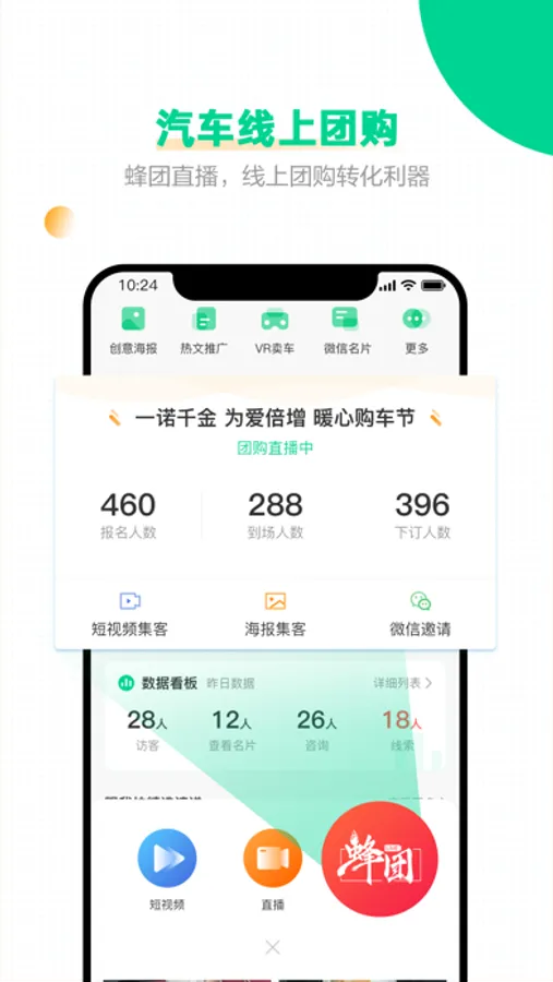 口袋蜜蜂是面向汽车销售顾问打造的营销工具,为销售顾问提供营销方案,打造汽车行业营销新场景,实现个性化营销模式,助力汽车销售人员提升营销业绩。