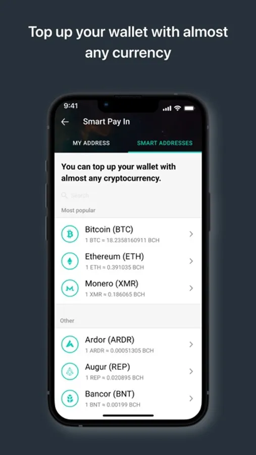 Install Bitcoin Cash Wallet and enjoy simple transactions and multi-level security features. It is a free BCH (BCC) wallet with a built-in exchange and intuitive interface. Bitcoin Cash Wallet combines all the best features of crypto wallets in one application.