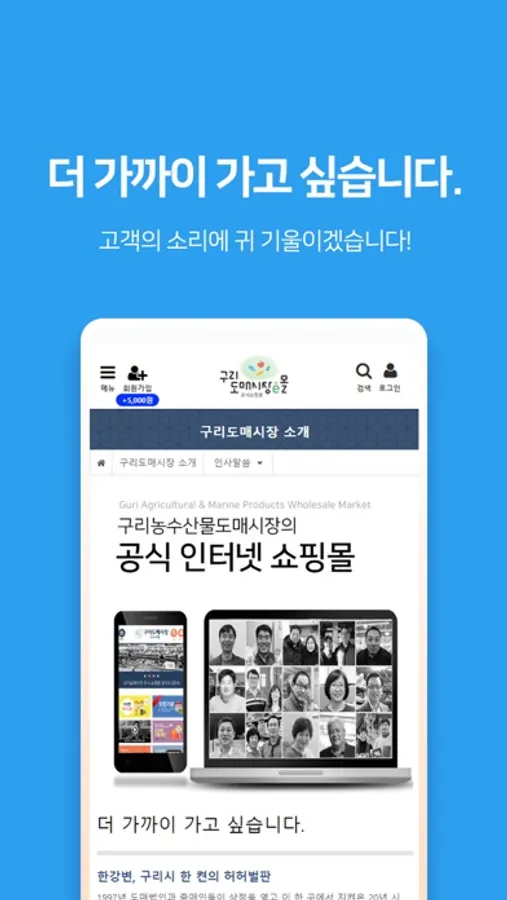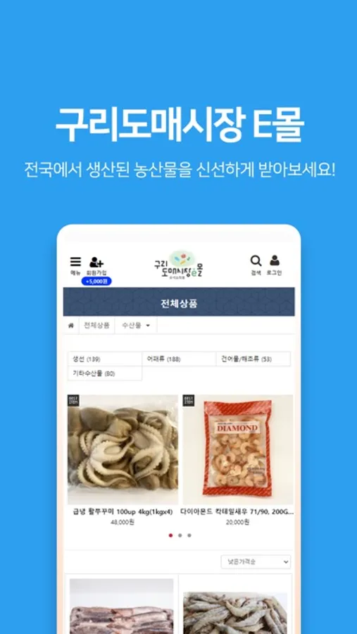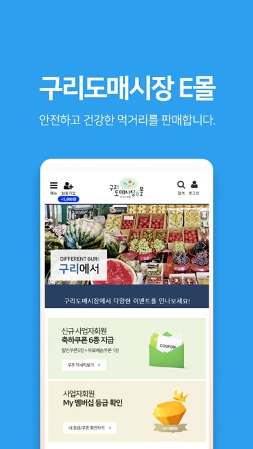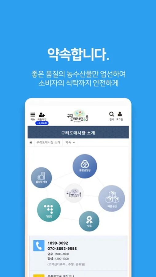 구리농수산물도매시장 공식 쇼핑몰을 이제 모바일앱으로!