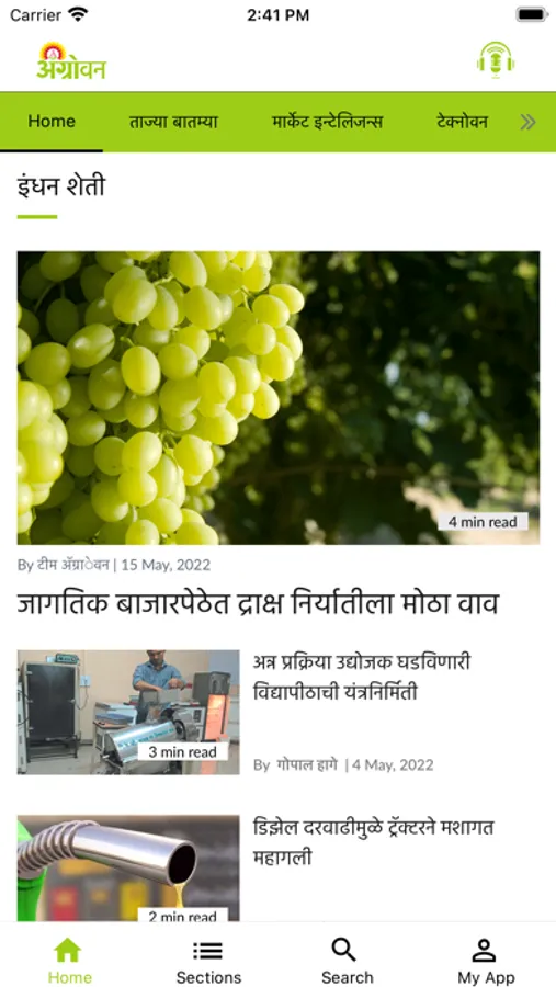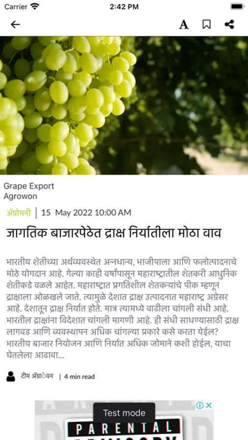 The objective of equipping farmers with factual information on the latest technology to make them globally competitive and help them increase their per capita income. Agrowon has achieved a whopping readership in print as well as on the Digital platform. The brand's popularity is growing with huge responses from farmers.We look forward to growing with the mobile app medium. This popularity is attributed to Agrowon’s sensible and in-depth reporting of agricultural issues and rural development. It is the authoritative medium pertaining to all aspects of Agriculture. New trends, better practices, and the application of futuristic technologies are presented lucidly. The coverage includes core farming, agricultural produce market as well as Agro based activities like dairy, poultry, and fisheries.