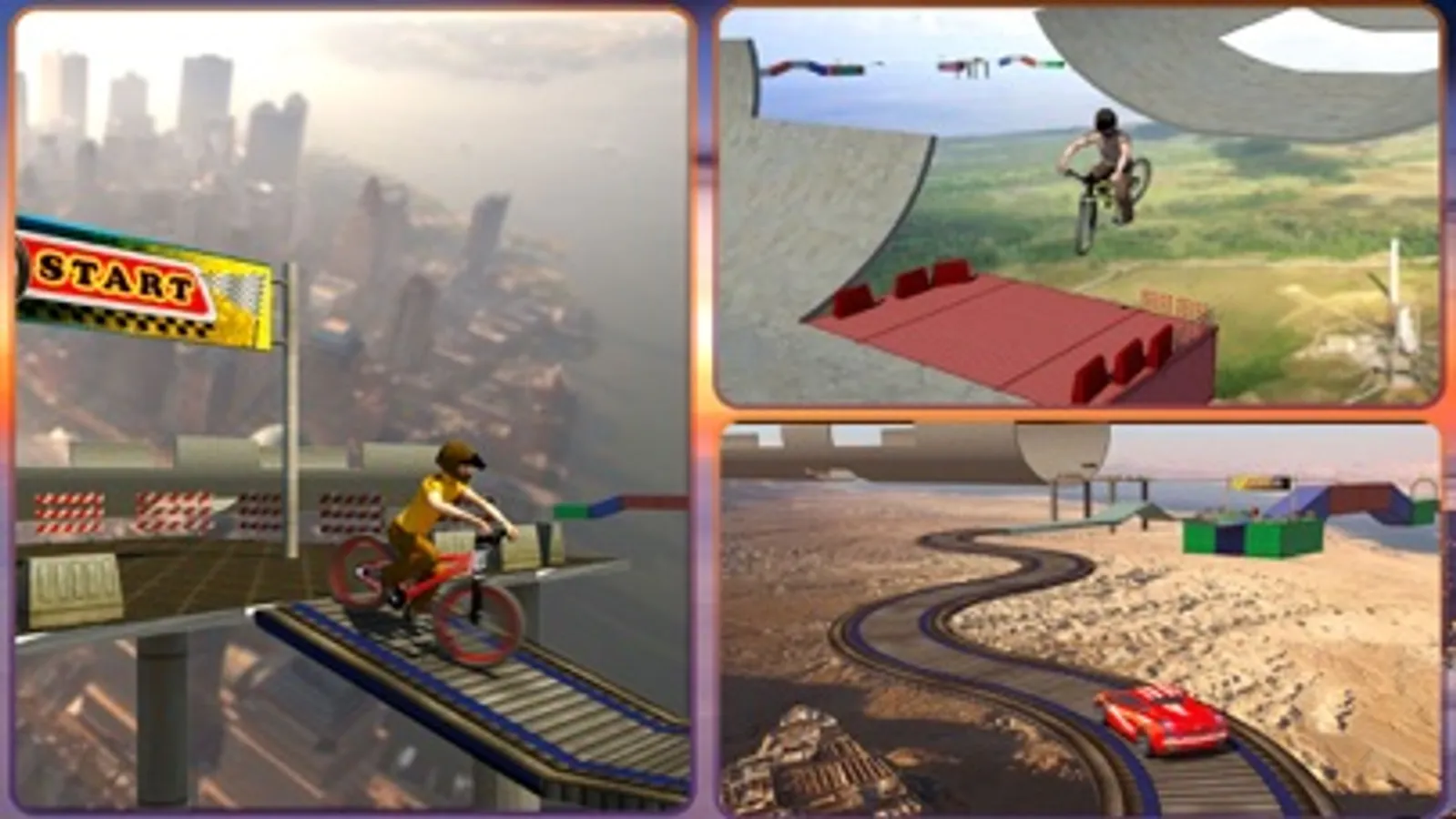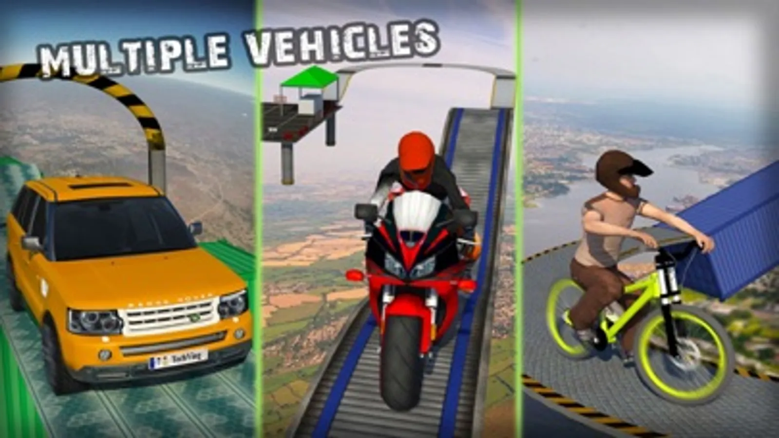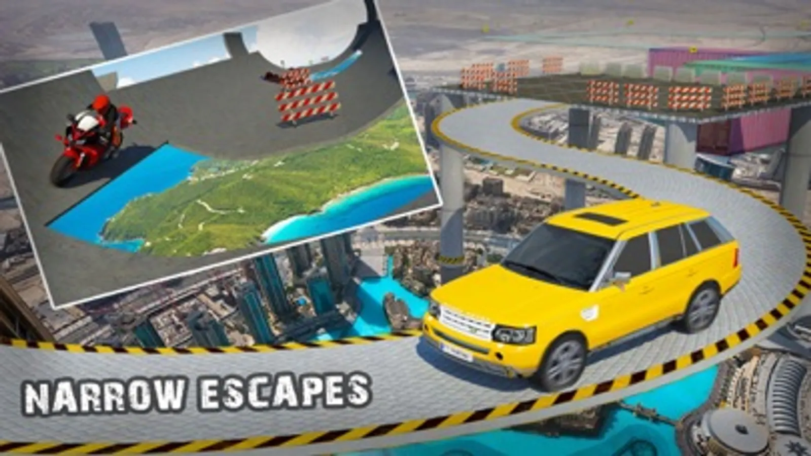 Burn up sky high ramps with impossible car driving game of 2k17. Buckle up for stunt driving and muscle car racing on deadly tracks. Become a furious driver of luxury cars, sports bikes and bmx bicycles on sky high impossible tracks.