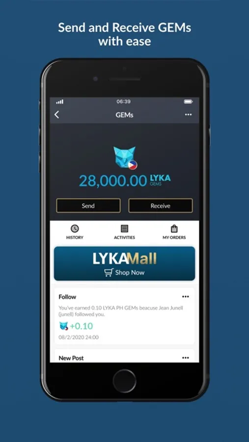 SEND & RECEIVE GEMS - send and receive LYKA Gems easily and securely with the new pin system and QR code.