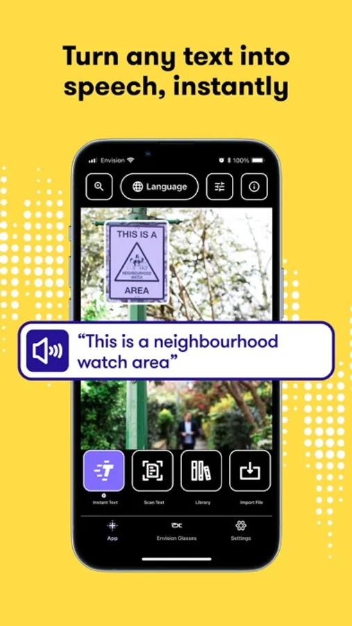 Simply use your phone camera to scan any piece of text, your surroundings, objects, people or products and everything will be read out to you thanks to Envision’s smart artificial intelligence (AI) and Optical Character Recognition (OCR).