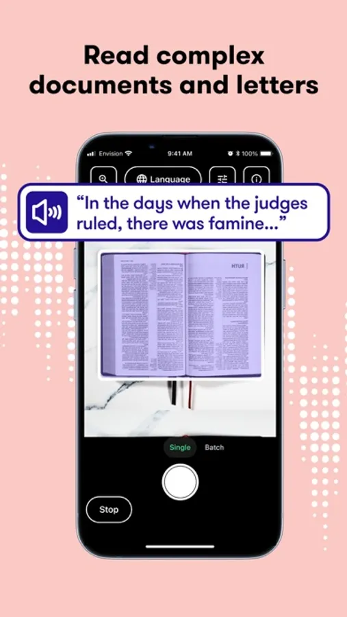 Envision is developed for and together with the visually impaired community. The app is simple, gets things done and brings the best assistive experience to blind and low vision users.