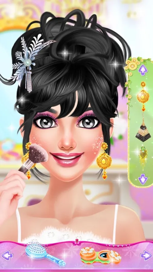 Start off by giving her the best facials and spa treatments to make her skin glowing for the big wedding day. Then dress her up by finding Indian dresses made by famous Indian Designers. She needs to look the best in her expensive dress. Once her main dress has been chosen, let us do her makeup and make her look like a pretty Indian Bride. She is ready for the day! Oh, wait – the jewellery completes the look, we forgot to select her jewellery pieces. Let us quickly select the best jewellery for her to match her makeup and outfit.