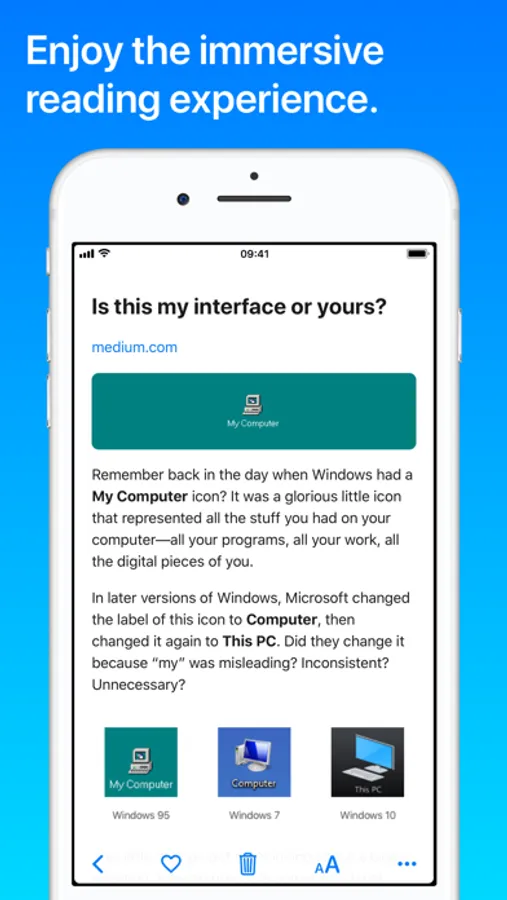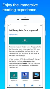 • No network, no problem: saved articles can be read at anytime, even without network