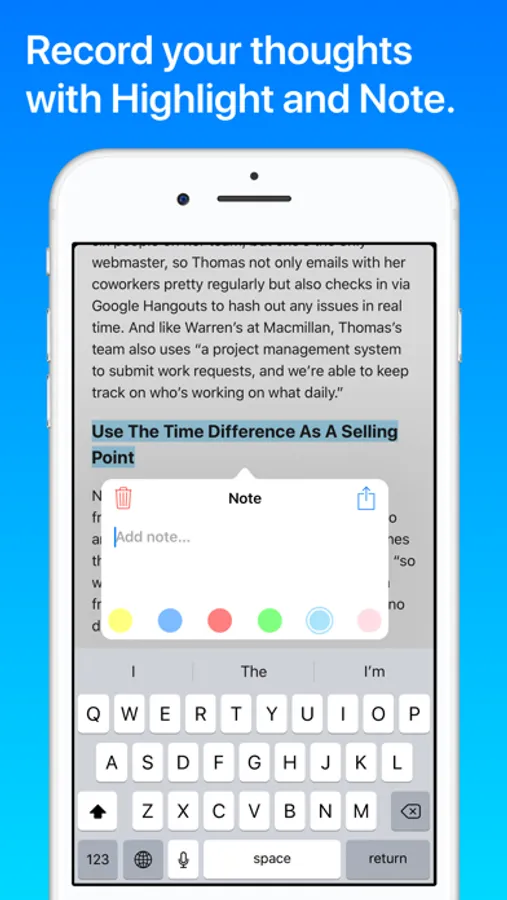 • Select, swipe, highlight, and add notes