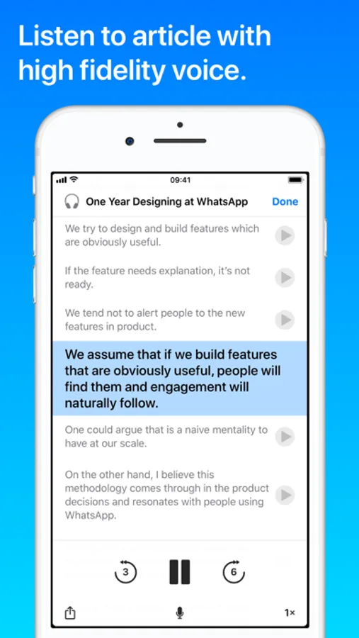 • Listen to articles with high fidelity voice, hands-free and eyes-free