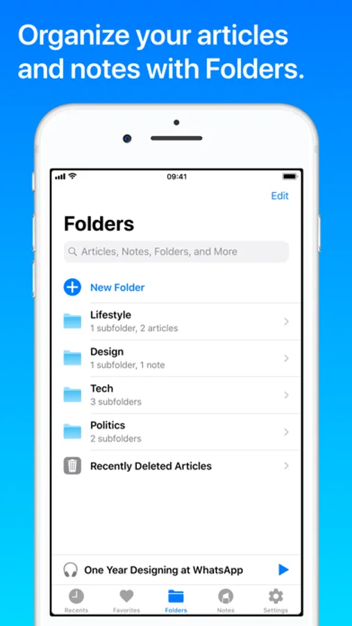 • Organize your articles and notes with Folders