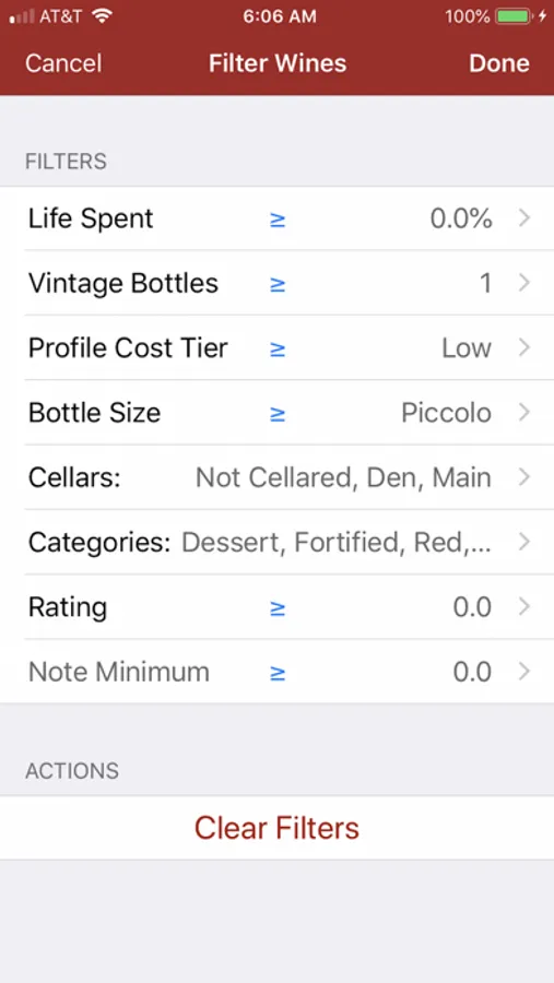 • Use Wine List Filters to focus on a subset of your collection and select the perfect bottle for your occasion.