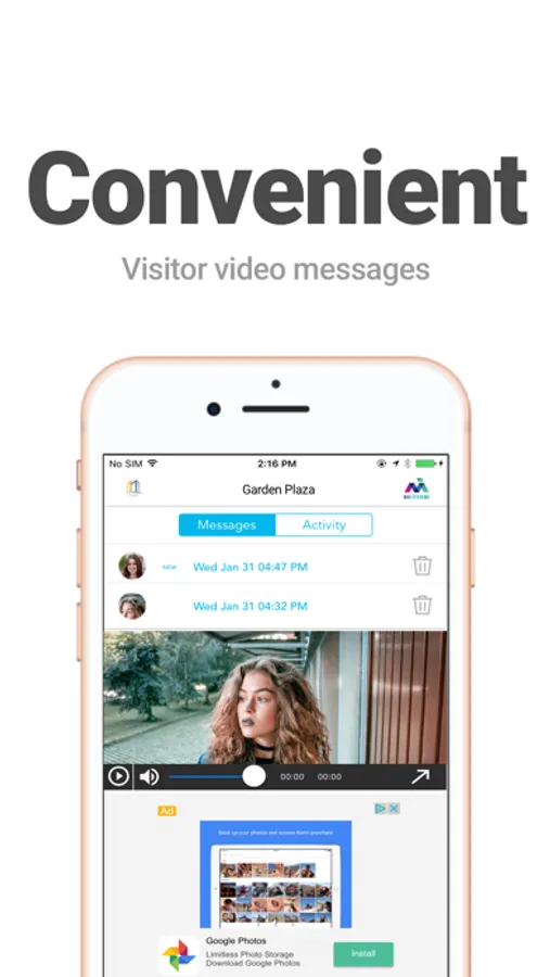- Users can view and playback video voice messages that were left in their absence.