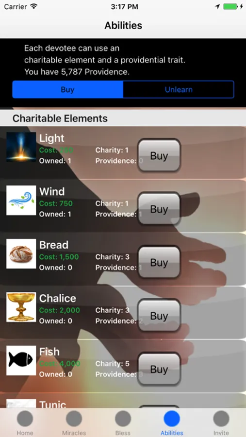 *Buy new items to perform miracles.