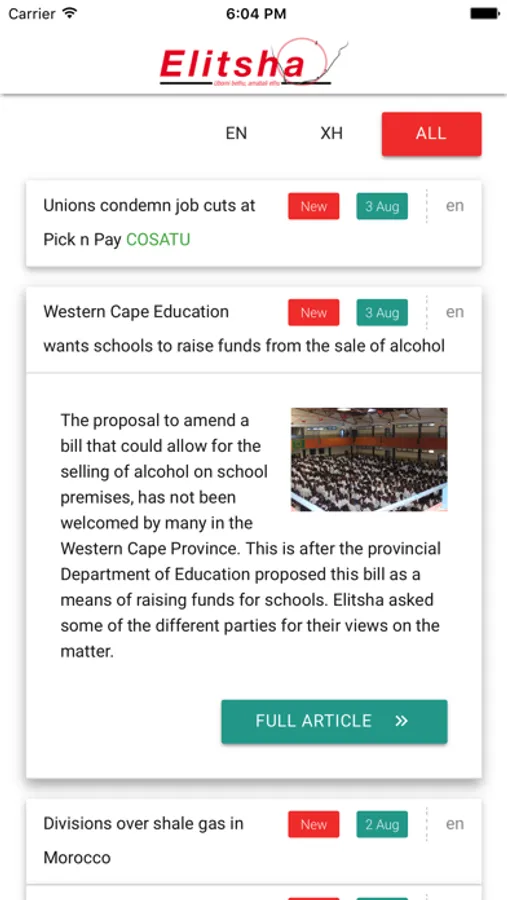 We provide news in English and Xhosa.
