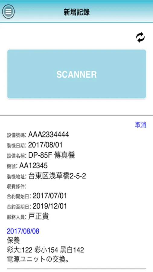 ・Get equipment information and work history from iMainte Center2 with scanning QR cord.