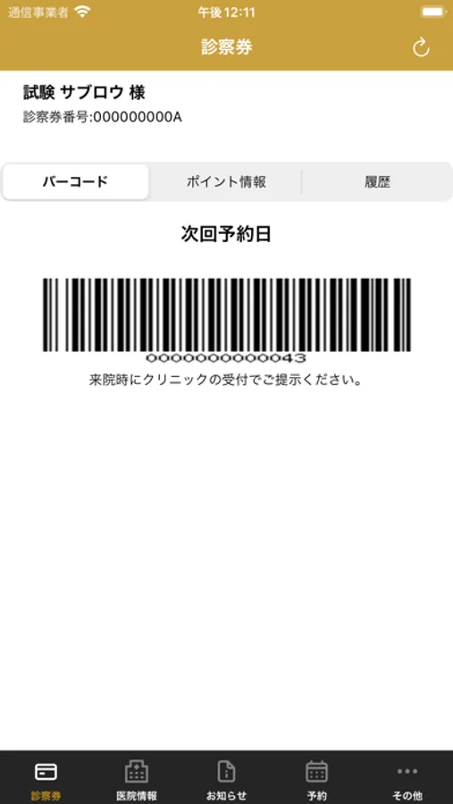 バーコードをかざすだけで受付出来るチェックイン機能、次回ご予約日時表示など、カードレスな診察券としてご活用頂けます。