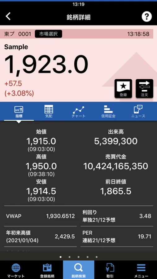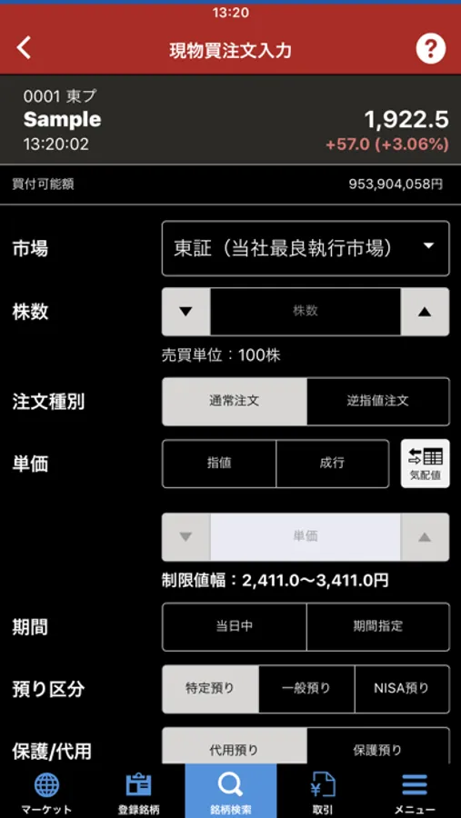 国内株式の現物売買/制度信用売買のお取引をアプリケーション内でご利用いただけます。