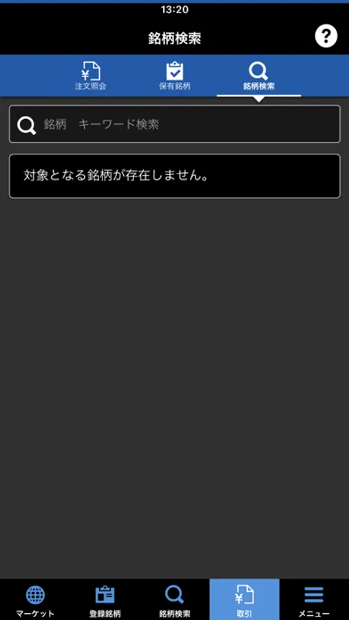 取引画面では現物売買、信用売買のお取引のほか、注文状況の照会や保有銘柄の状況の確認が出来ます。画面タップで操作できるため、誰でも簡単にお取引いただけます。