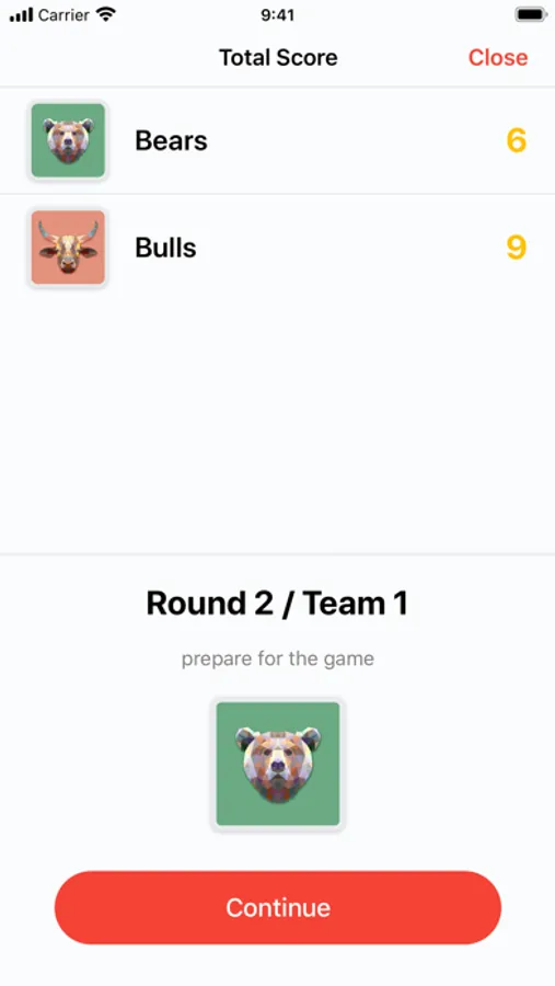Turn is determined by whose logo will be displayed. Also, on the screen, you can see the current results table. Before you click "Continue," you need to determine who will explain words in your team. This person must constantly change.