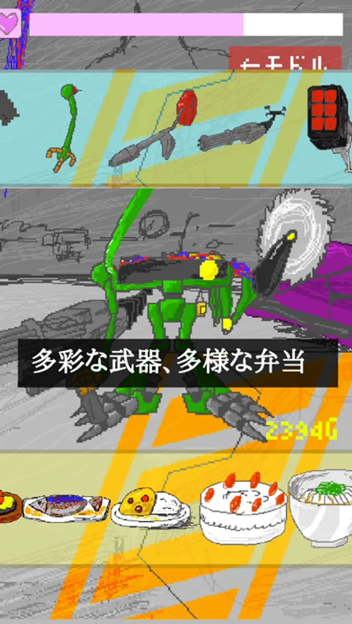 + 多種多彩な武器、食べもの、敵キャラクターが登場。