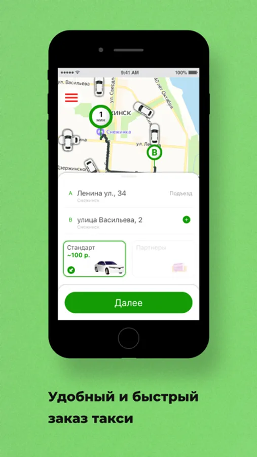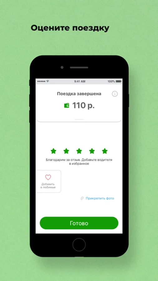 Следите за поездкой на карте. Приложение сообщит время подачи, марку, цвет, номер машины.