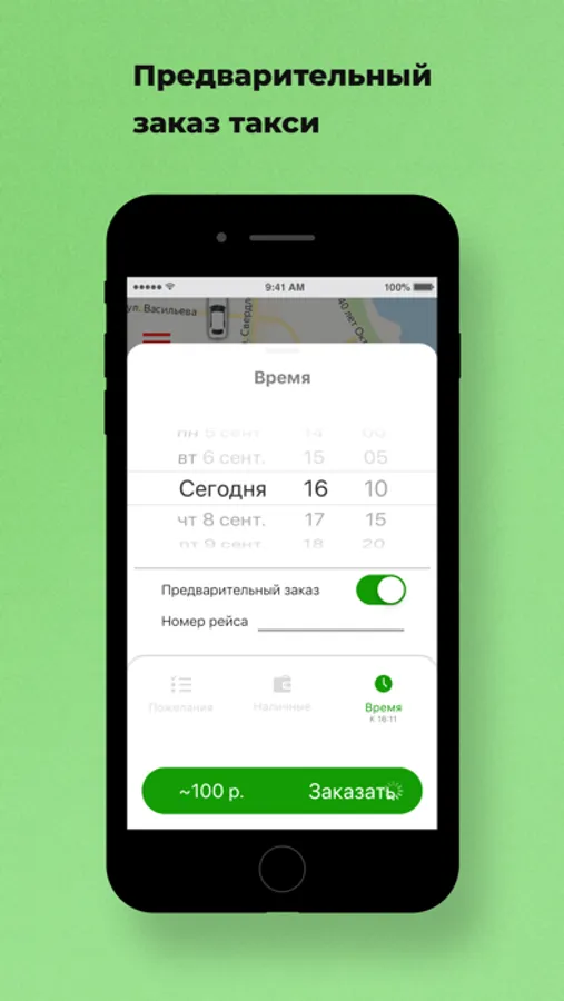 - Вызывайте такси к определенному времени, если нужно запланировать поездку заранее. Например, поездка в аэропорт, чтобы успеть на регистрацию.