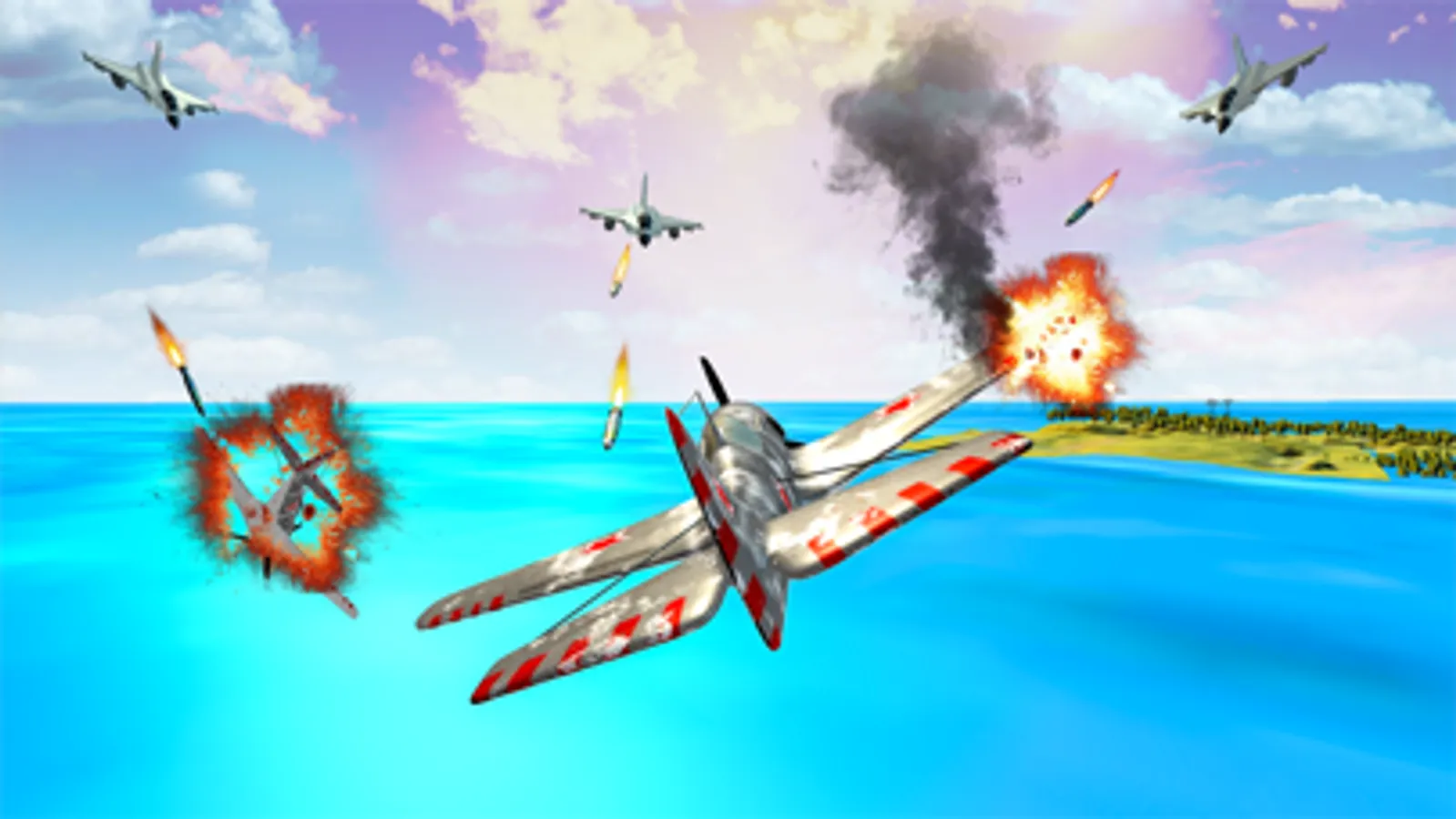 Some of the main features of the game include realistic air base features, giving you the perfect experience. The changeable camera orbit helps in navigating smoothly across the skies and gives you the perfect 3D involvement. It is a fun aircraft shooting game with realistic sounds and detailed graphics. With such amazing and fun features, this plane shooting game offers a gameplay that is easily understood and familiar. The challenge is to destroy your targets by using your air simulator to combat the enemies through air strikes, win the war and land safely back in your air base. Save yourself from the attack of the enemy. A full action gameplay and it is super fun to play. You can get the best aviation training and help protect your air base in this exciting airplane fighting game. Join the fierce air combat and complete your missions by destroying your enemies in this amazing airplane simulation game.