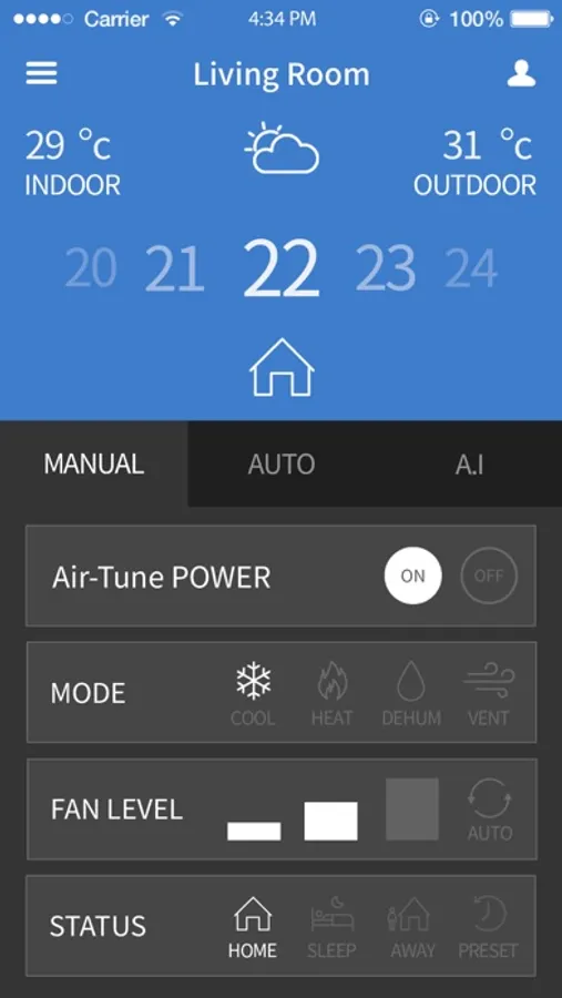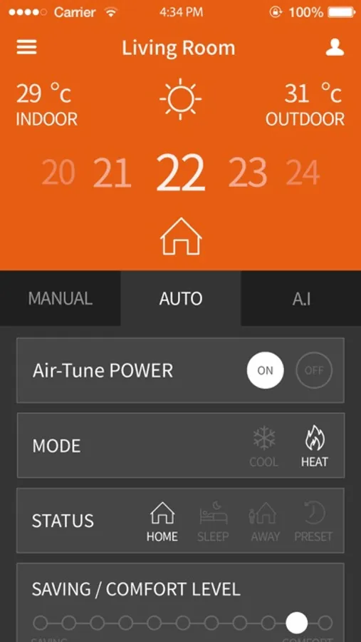 Air-Tune app allows you to control your A/C with your smart phone from anywhere. Air-Tune detects your presence to automatically switch on/off your A/C for maximum comfort and convenience. With its artificial intelligent software, Air-Tune also learns your user pattern and automatically controls your A/C. So more you use this app, less you will need to think about your room temperature.