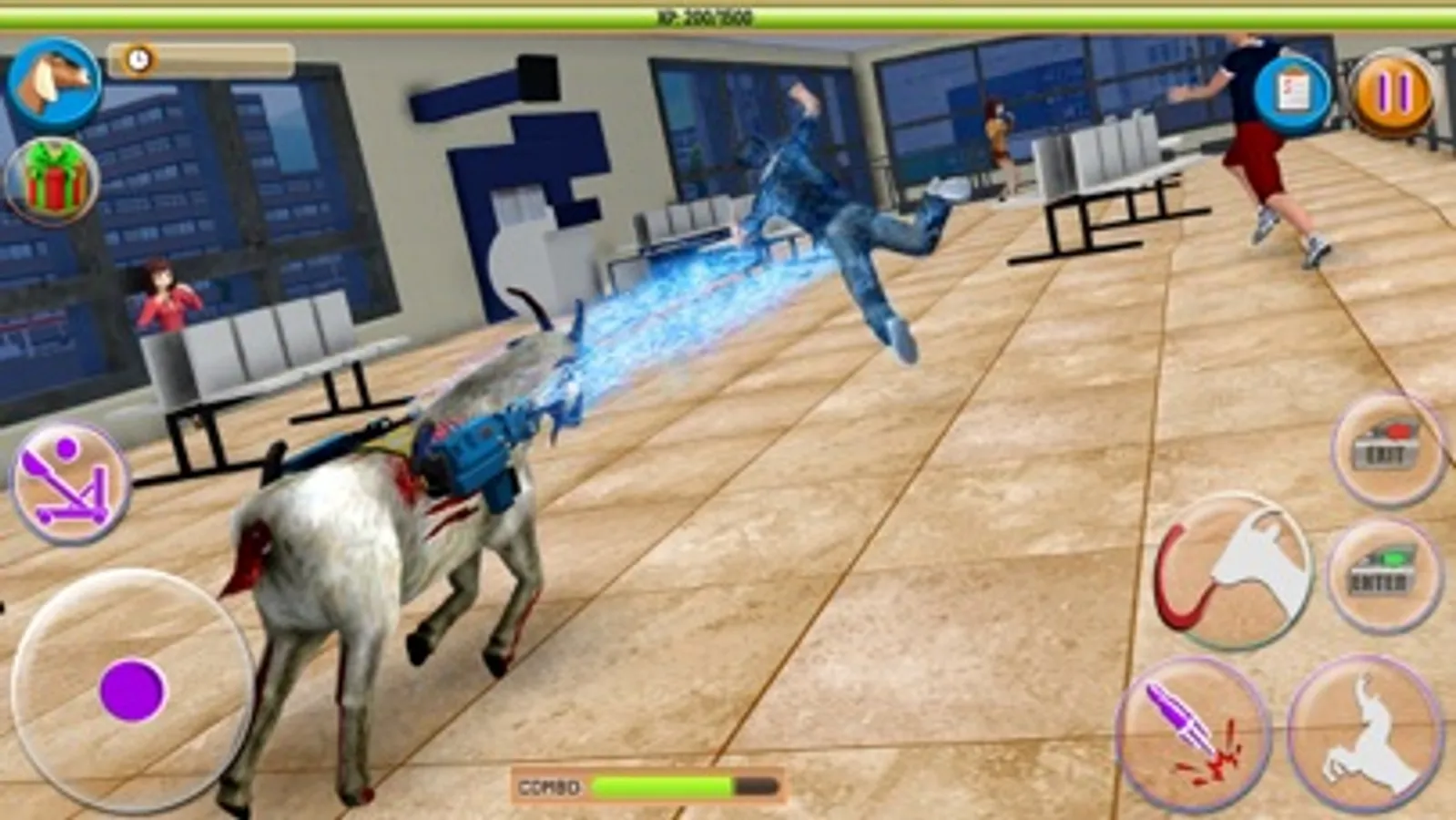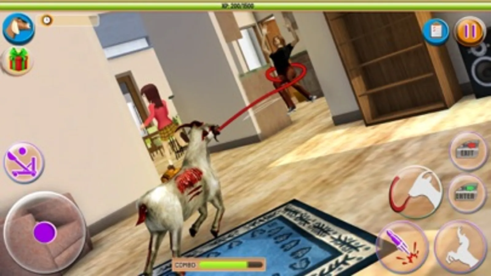 Scamper and jump around New York City. Scary Goat is on a mission to cause destruction...and maybe catch some tasty snack if he’s lucky!. Run in a rampage and scare everyone away! Kick down gates and cars with your powerful hooves. Race and chase down bicycles and scare them for life with your crazy goat eyes! Take control of trucks and cars when you steal them, and drive them like a human! Fight and attack city heroes.