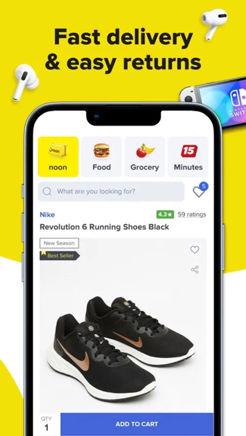 Take the stress out of shopping online and get the best deals on the noon super app. Shop from the comfort of home, with everything you need at your fingertips. Get your grocery shopping done quickly with noon grocery, Food and Minutes, with fast delivery on daily essentials. Enjoy free delivery, exclusive deals and more with noon One. The noon super app brings you the same world-class shopping experience you enjoy when shopping at the noon online store.