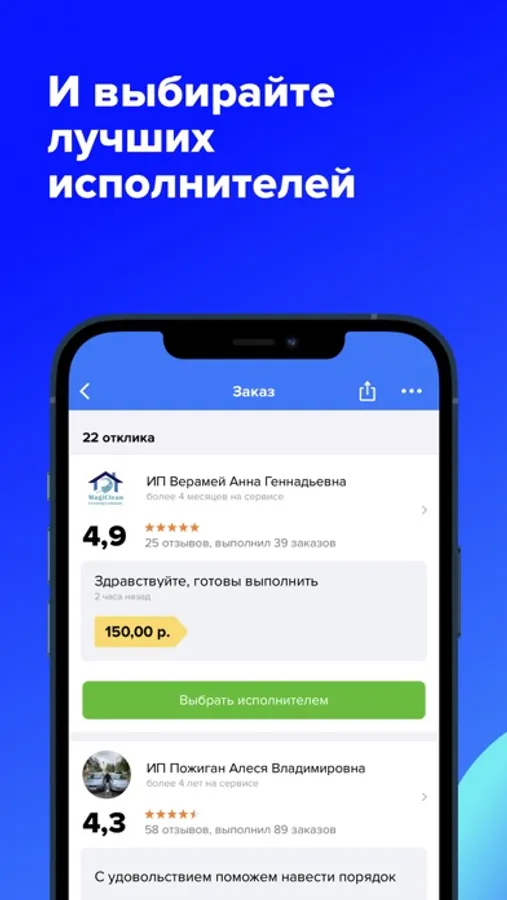 ● Выберите исполнителя, чей отклик вас больше всего заинтересовал.