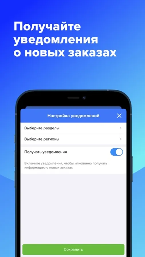 ● Создайте персональный список отслеживаемых разделов и получайте уведомления о только что созданных заказах.