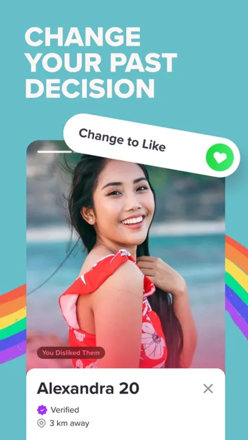 • Rewind – Accidentally swiped left? Hit the rewind button anytime to change your decision.