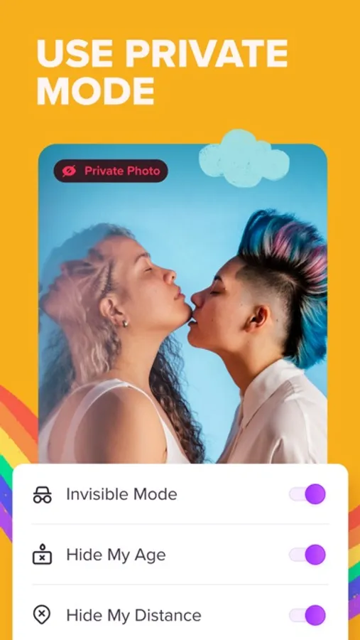 • Private Mode – be visible only to the users you liked beforehand or match with.
