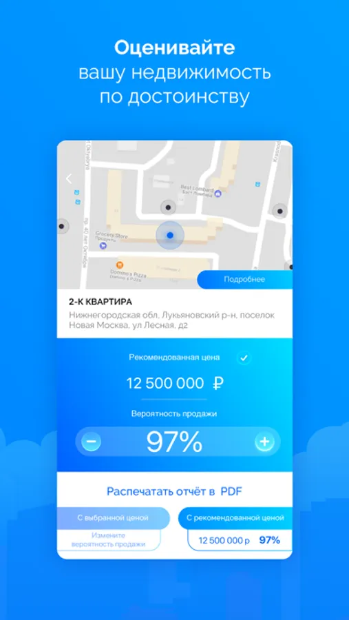 Установить подходящую цену легко, когда для вас готов обзор аналогичных предложений на рынке. Мы подскажем, сколько стоят похожие квартиры по соседству и оценим, насколько вероятна продажа по желаемой цене.