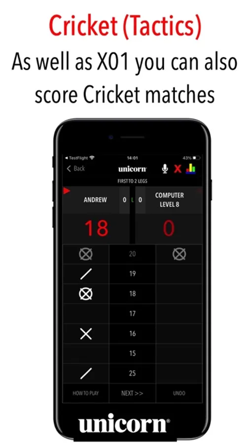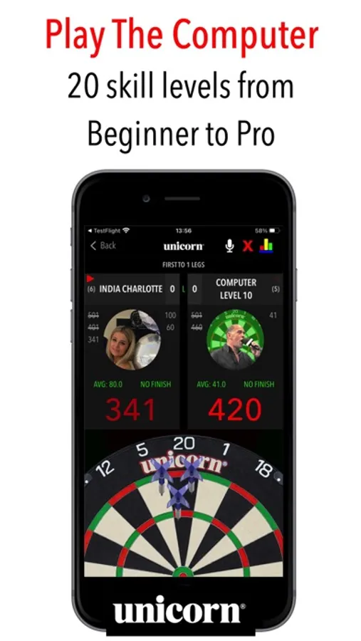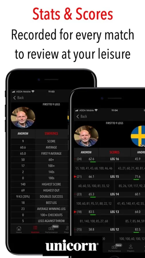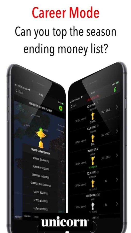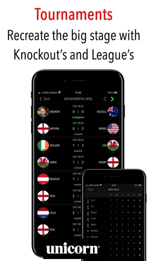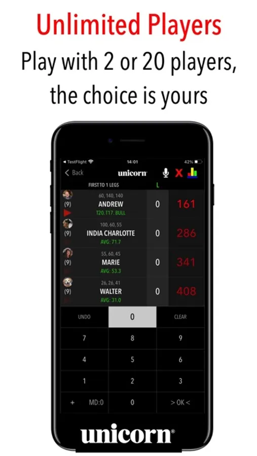 The only darts scoring app officially endorsed by global darts brand Unicorn.