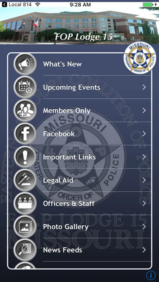 The official mobile app for the Missouri FOP Lodge 15. Features include: