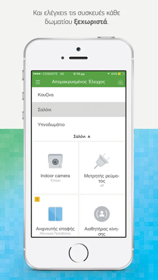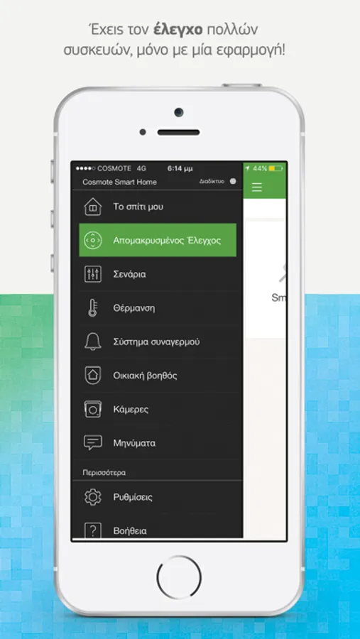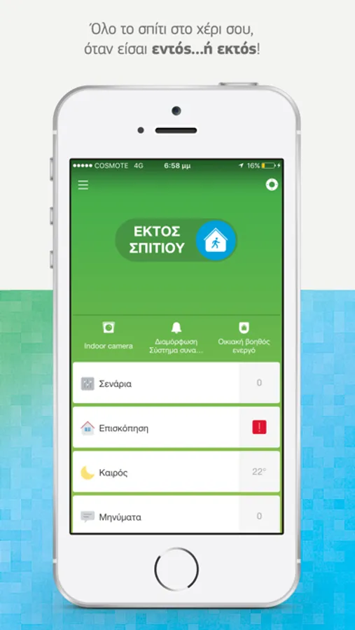 This app requires the activation of COSMOTE Smart Home service, available at COSMOTE and GERMANOS Shops and the installation of the COSMOTE Smart Home Base, which is available at shops.