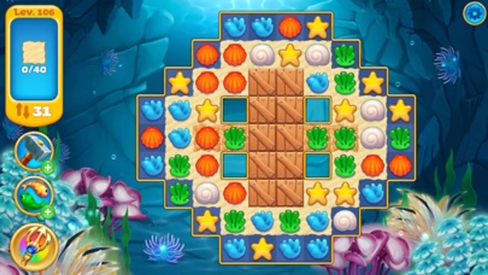 Only Trito can bring peace and harmony to ocean depths with the help of magical energy he can get by moving and combining three or more chips of the same kind.