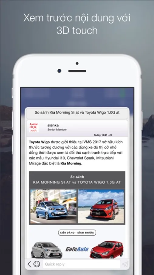 - Hỗ trợ 3D touch để xem trước nội dung của Thread