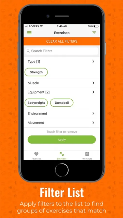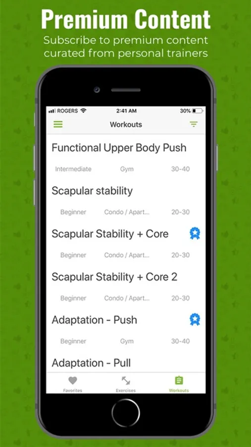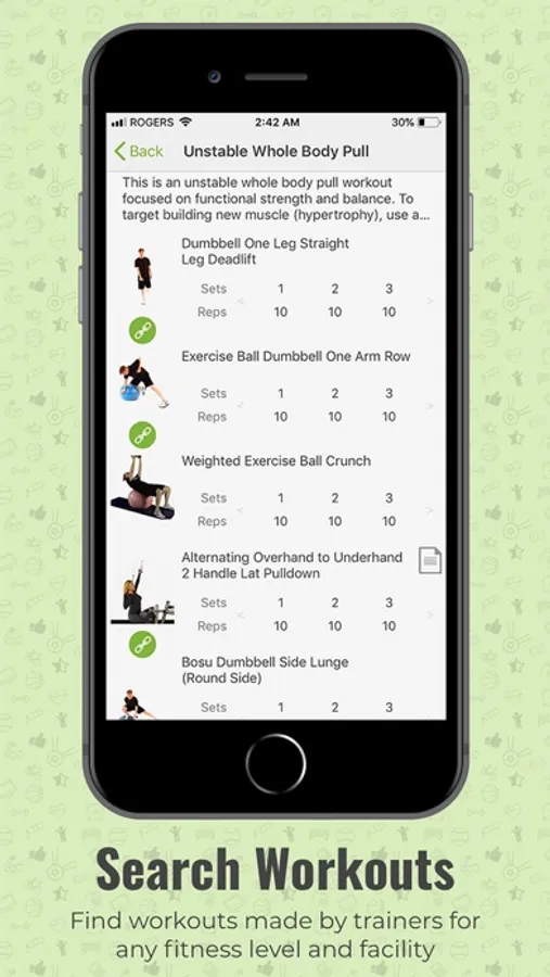 Easily search for exercises based on muscle, equipment, or core movement, or workouts based on fitness level, equipment or duration. View exercise videos, pictures and written instructions, along with the sets and reps/time for workouts. Users can make a list of their favorites and also send a request to a trainer for fitness programming and online support.