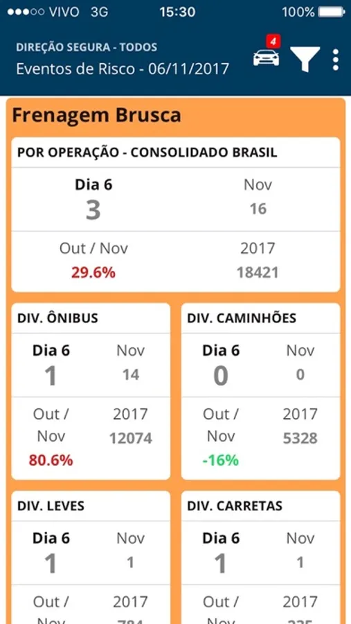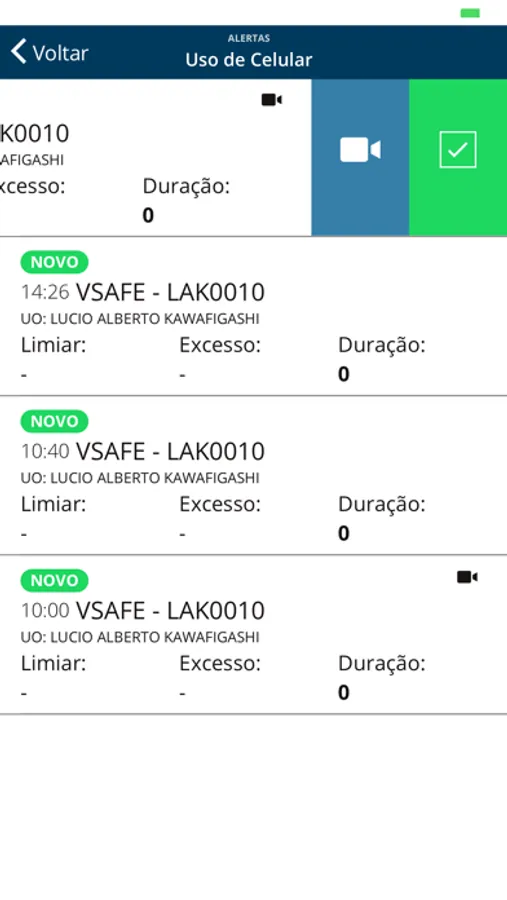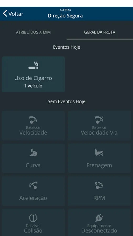 Com foco na Direção Segura, o aplicativo conta com monitoramento de eventos de: