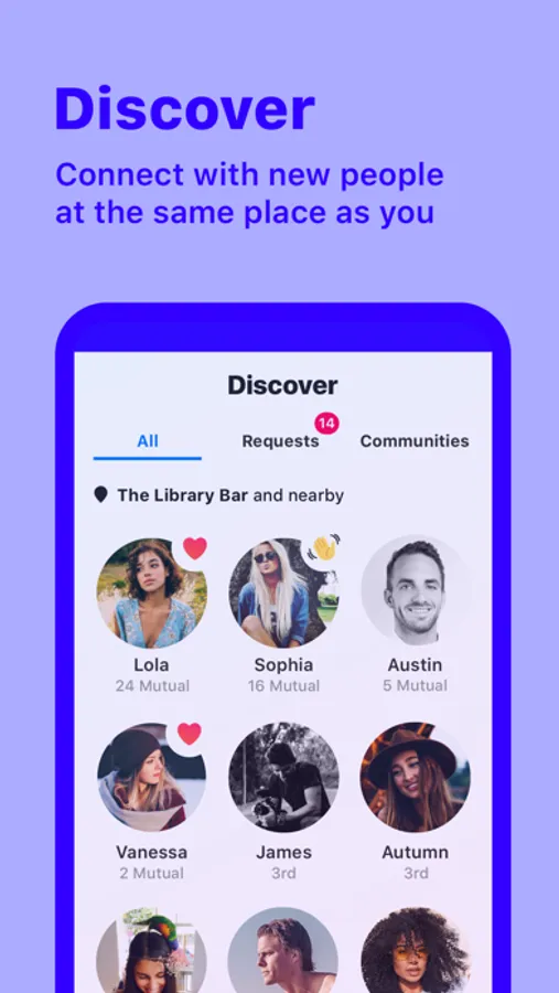 Radical will show you a list of people at the same place as you (or nearby). We’ll highlight members that are connected to you in some way (i.e. mutual friends, friends of friends, hometown), towards