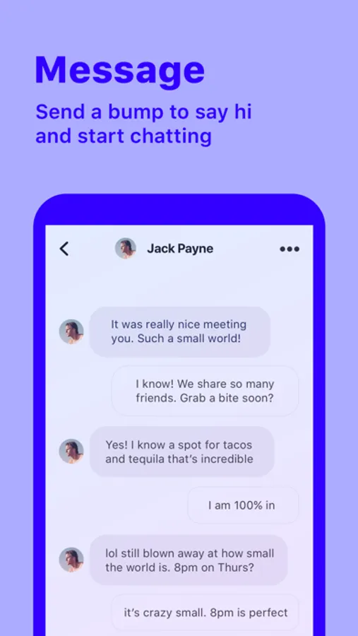 Bumps make it easy to get someone's attention. If you bump someone and they bump you back, the ability to message them will unlock.