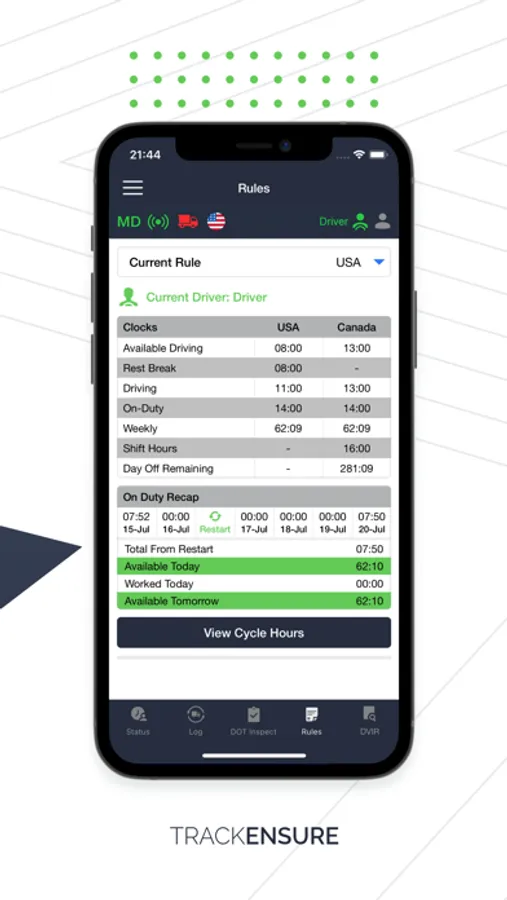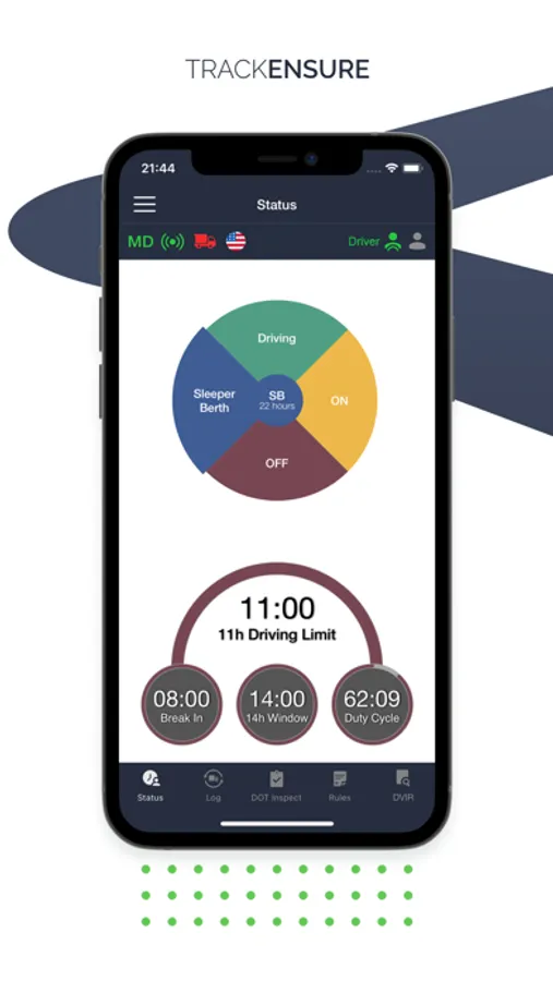 TrackEnsure ELD application provides Owner Operators and Fleet Owners with an Electronic Logging Device solution based on TrackEnsure platform.