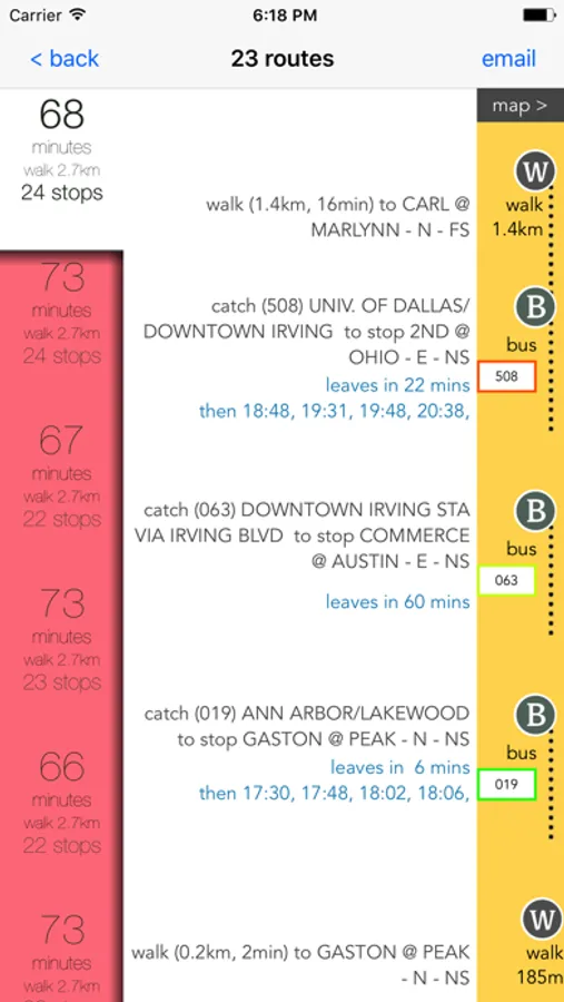 DART includes bus, light rail, and streetcar services. The DART rail system includes 4 light rail lines: Red, Orange, Green, and Blue. All four serve downtown Dallas and extend out in every direction, with many stations along the way. The streetcars can bus utilised for quick and free travel in the areas around downtown, and a multitude of bus lines cover the rest of the city.
