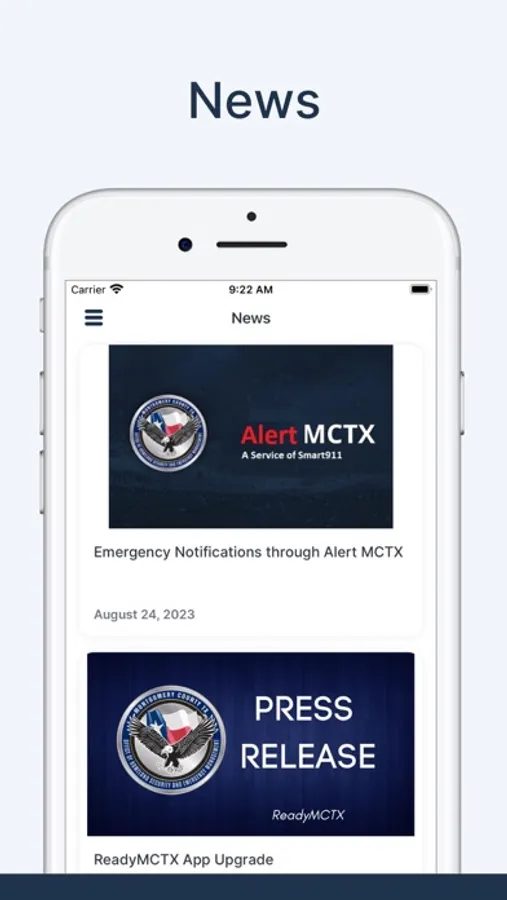 ReadyMCTX serves as a mobile emergency preparedness hub for residents of Montgomery County, Texas. Citizens have access to various resources, including digital guides, FAQs, videos and checklists, to help them prepare for and respond to any crisis. With the inclusion of advanced safety and planning modules, users can stay current on ongoing incidents and tuned into updates and events.