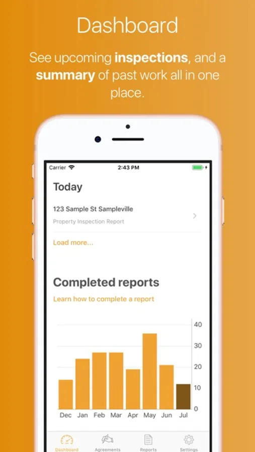 - View a summary of completed reports, including a breakdown of report types and locations on a map