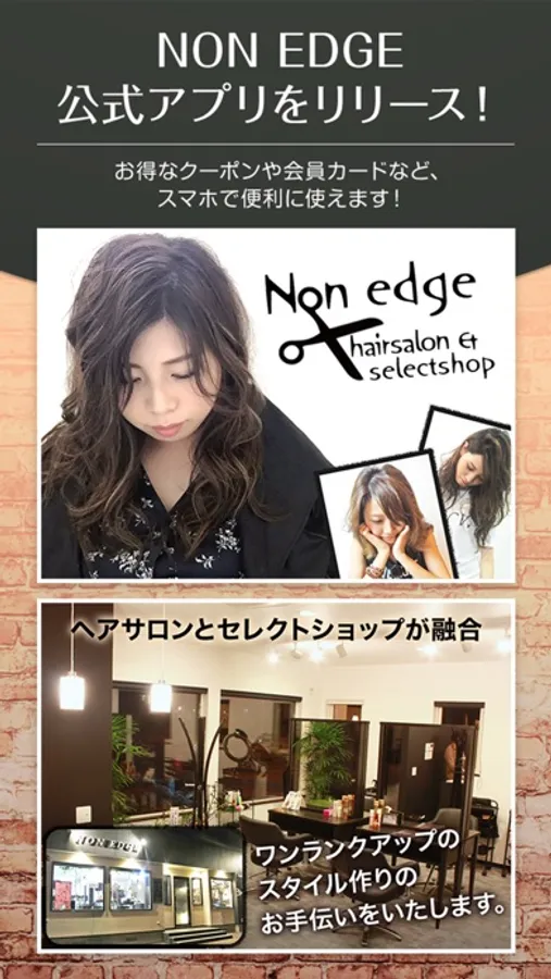 苫小牧にある美容室 NON EDGE(ノンエッジ)の公式アプリです。